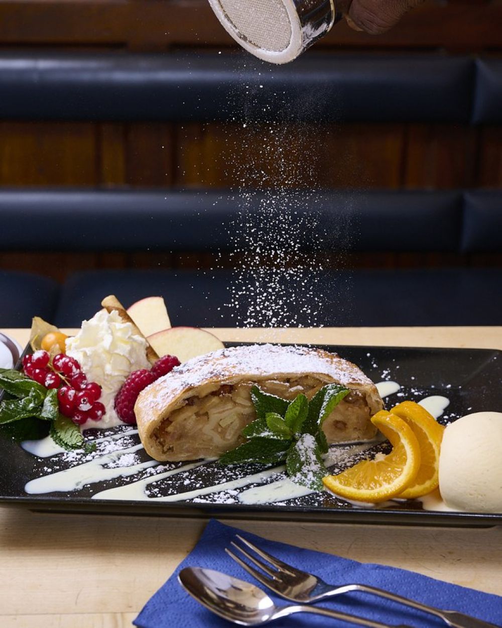 mit Vanilleeis & Vanillesoße / wahlweise mit Sahne